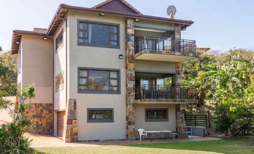 Presenting one of the finest boutique- estates on the dolphin coast of Kzn- north coast. Proudly offering this special- immaculately maintained and very well built home by the current owners. The landsite offers a great level flow overlooking the tropical wetland and ocean. The garden spaces are ideal for children and pets at play. The property offers a spacious design throughout both the downstairs and upper level of the home with large balconies and stunning sea views. Plus a home office or pyjama lounge upstairs. 3 double volume bedrooms and 4 bathrooms. plus guest bathroom.