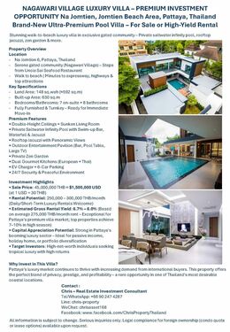 This is more than a residence – it's a prestigious lifestyle investment with strong appreciation in Pattaya's thriving luxury sector. Ideal for sophisticated investors seeking passive income or an exclusive tropical escape.