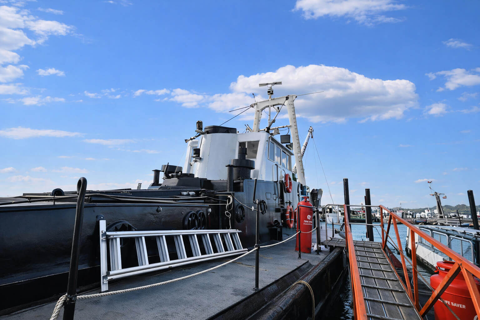 Originally built as a salvage vessel, Medway Rhino has been sympathetically and expertly converted to create a spacious, characterful home that retains its original working charm while providing all modern comforts.