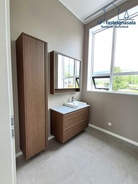 Fully finished and move-in ready. Private 15 m² balcony/terrace perfect for outdoor dining. Stunning fjord views from the living room, kitchen and one bedroom; mountain views from the other. Open-plan living/dining/kitchen, 2 bedrooms, laundry room and bathroom.