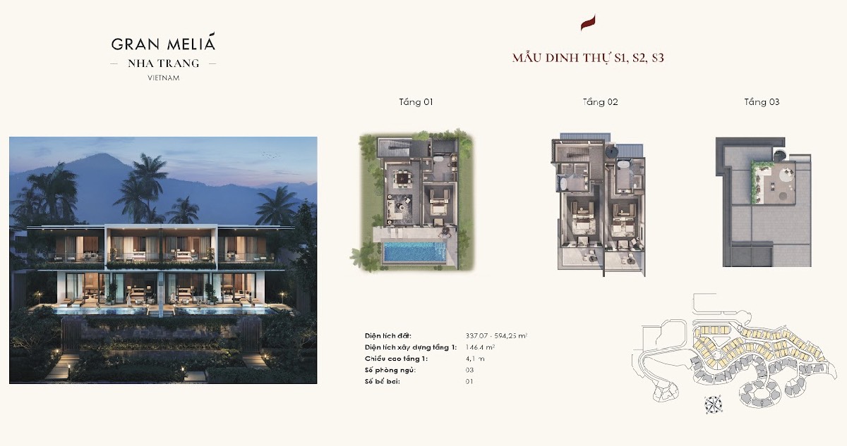 As one of 20 6* resorts and the first destination in Southeast Asia selected by the prestigious Gran Meliá Hotels & Resorts brand worldwide, Gran Meliá Signature Villa is considered the most beautiful architectural axis in the bay. Nha Trang beach.