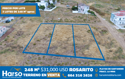 Venta de Terrenos en Playas de Santander, cerca a la carretera Tijuana – Rosarito. Con título de propiedad debidamente inscrito en Registro Público de la Propiedad y de Comercio, libre de todo gravamen.