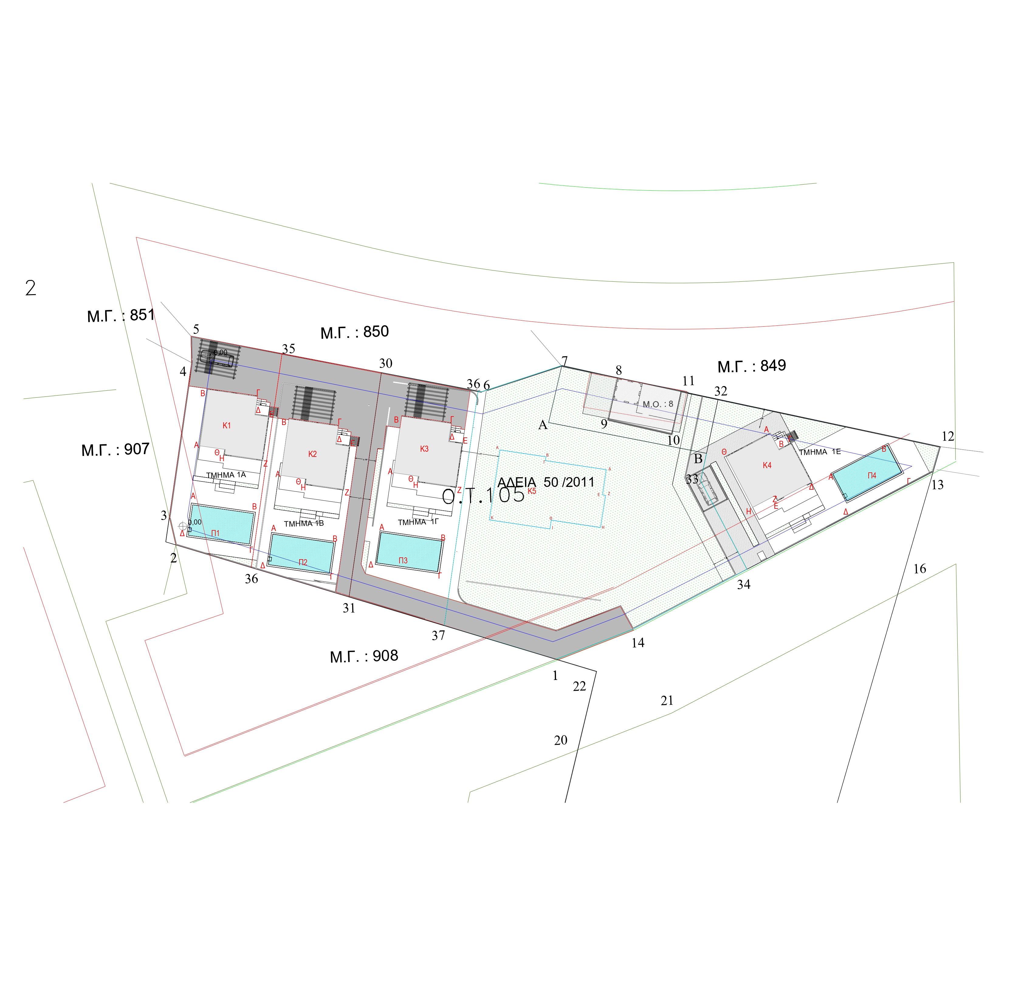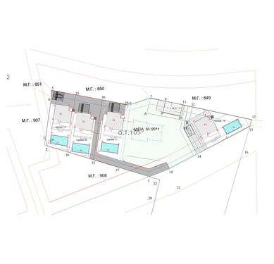 a 32 sq.m. pool, an open parking area with wooden pergola and a spacious planting area/garden.