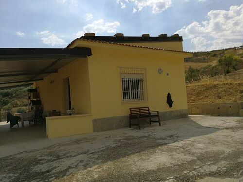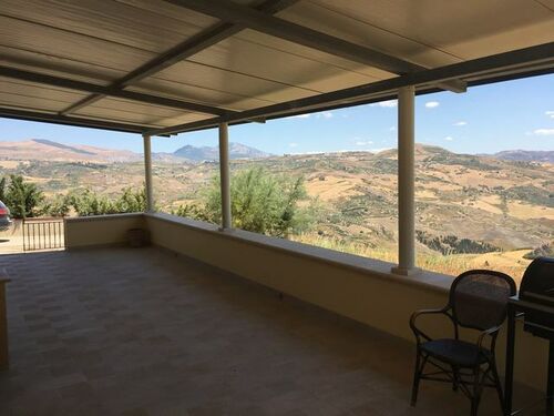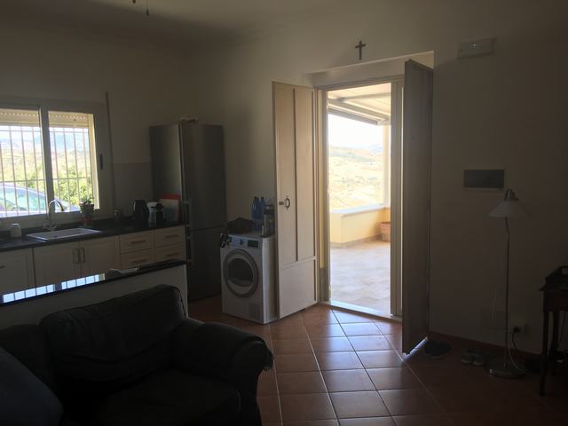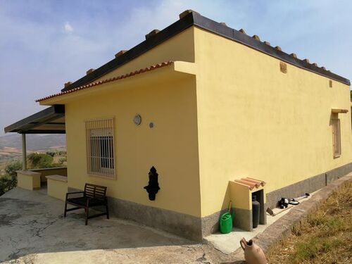 Sicilian Villa perched on a hill with 360 degree unspoiled views and a twenty minute drive to miles of white sand beaches with affordable restaurants and cafes. The house is completely renovated and ready to move into. 60 sqm apartment, kitchen / dining room, bedroom, shower, separate toilet. Covered terrace of 60 square meters prepared for the installation of two - three additional rooms. Scandinavian kitchen with granite counter top. Large gas stove, extractor hood. Dishwasher. Refrigerate / freeze. Washer and Dryer On the ground there is a metal shed of 15 square meters and a stone house of 5 square meters which can be extended and used as a guesthouse. Huge plot of 25,000 square meters with olive and almond groves.