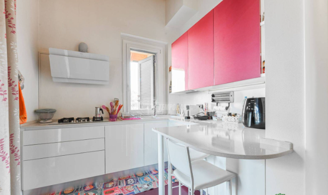 Cucina abitabile, spazioso soggiorno, 2 camere da letto e 2 bagni, progettato per garantire comfort e privacy.