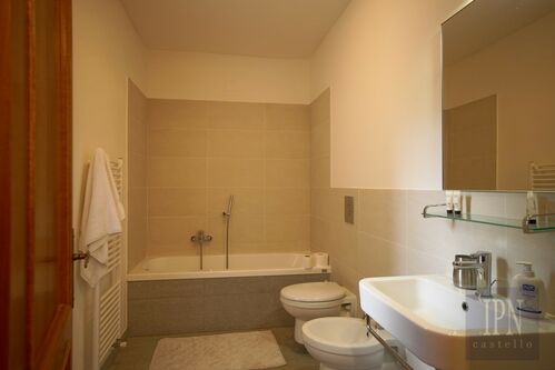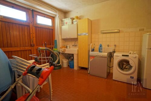 On the ground floor, the layout includes a spacious living room, a fully equipped kitchen, a bathroom with bathtub, and a garage with direct internal access — ideal also for conversion into additional living space, such as a studio or workshop.