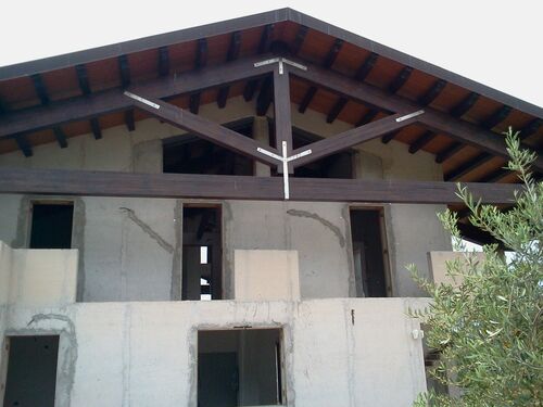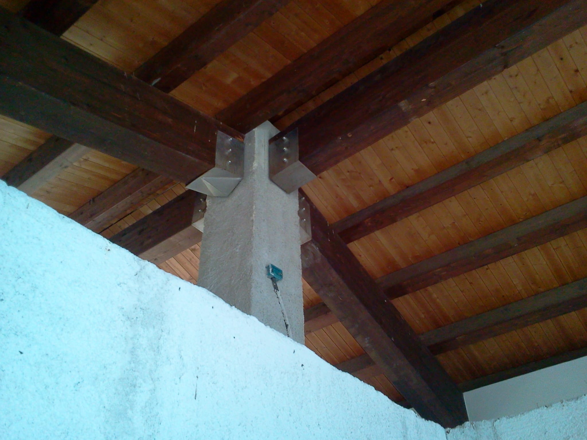 Capriate in legno lamellare su pilastri in c.a. con piastre inox;