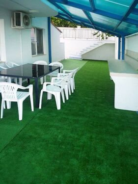 Landscaped yard with special artificial grass and full drainage system