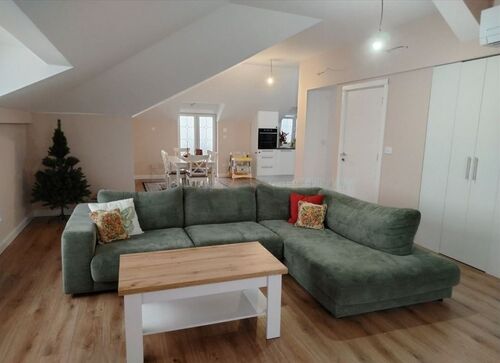 PTK - consists of an entrance area, a corridor, a living room, a dining room with a kitchen and a gallery (which is not in square footage), two bedrooms, one of which is a master bedroom, from the bedroom and living room there is a balcony with a wide view of the city and the Danube. The apartment has underfloor heating.