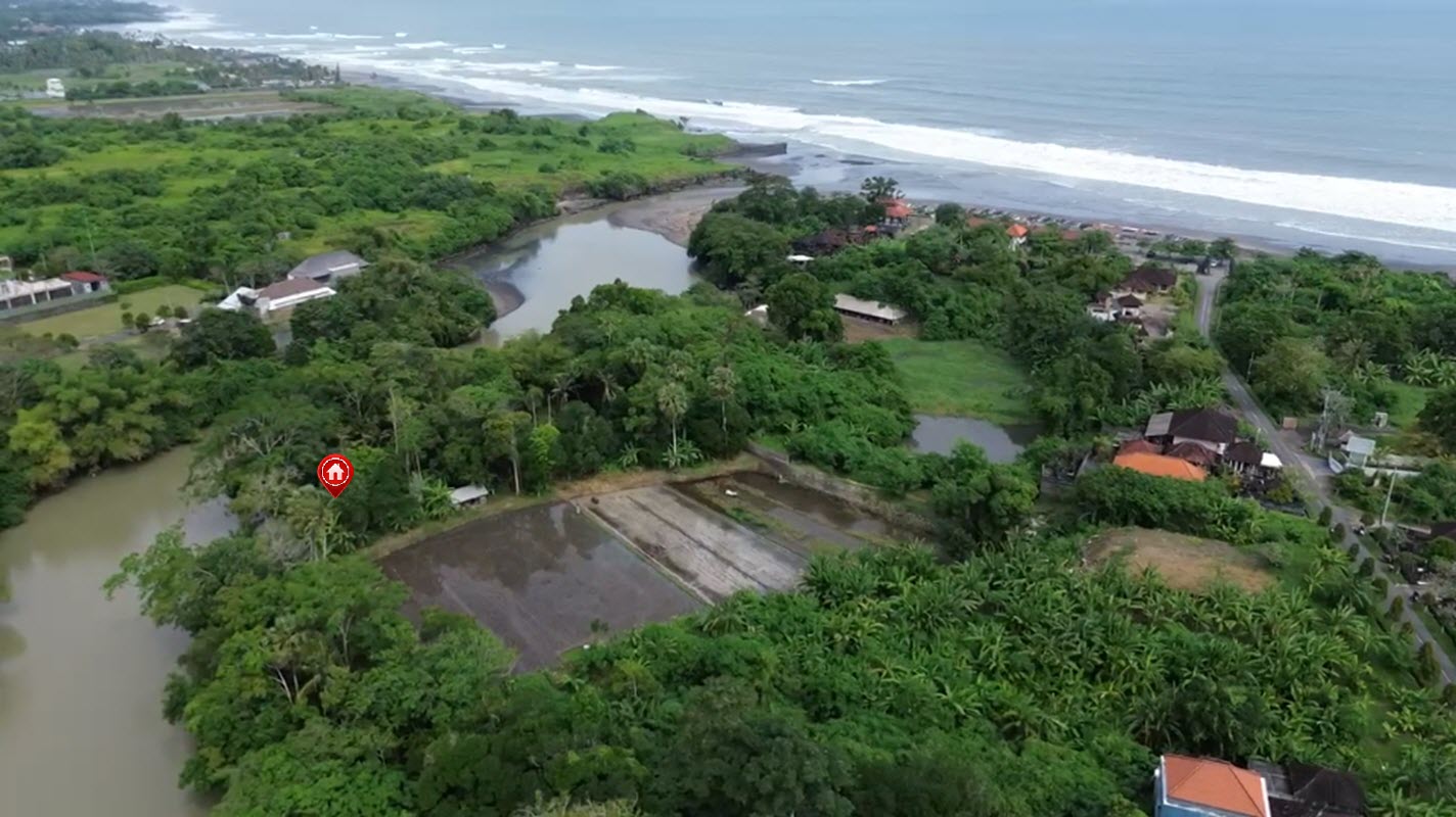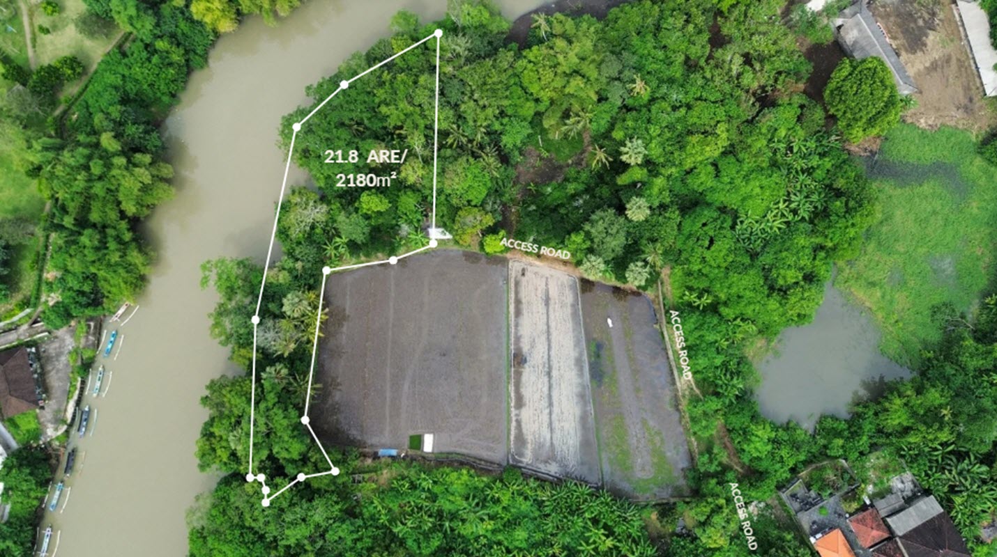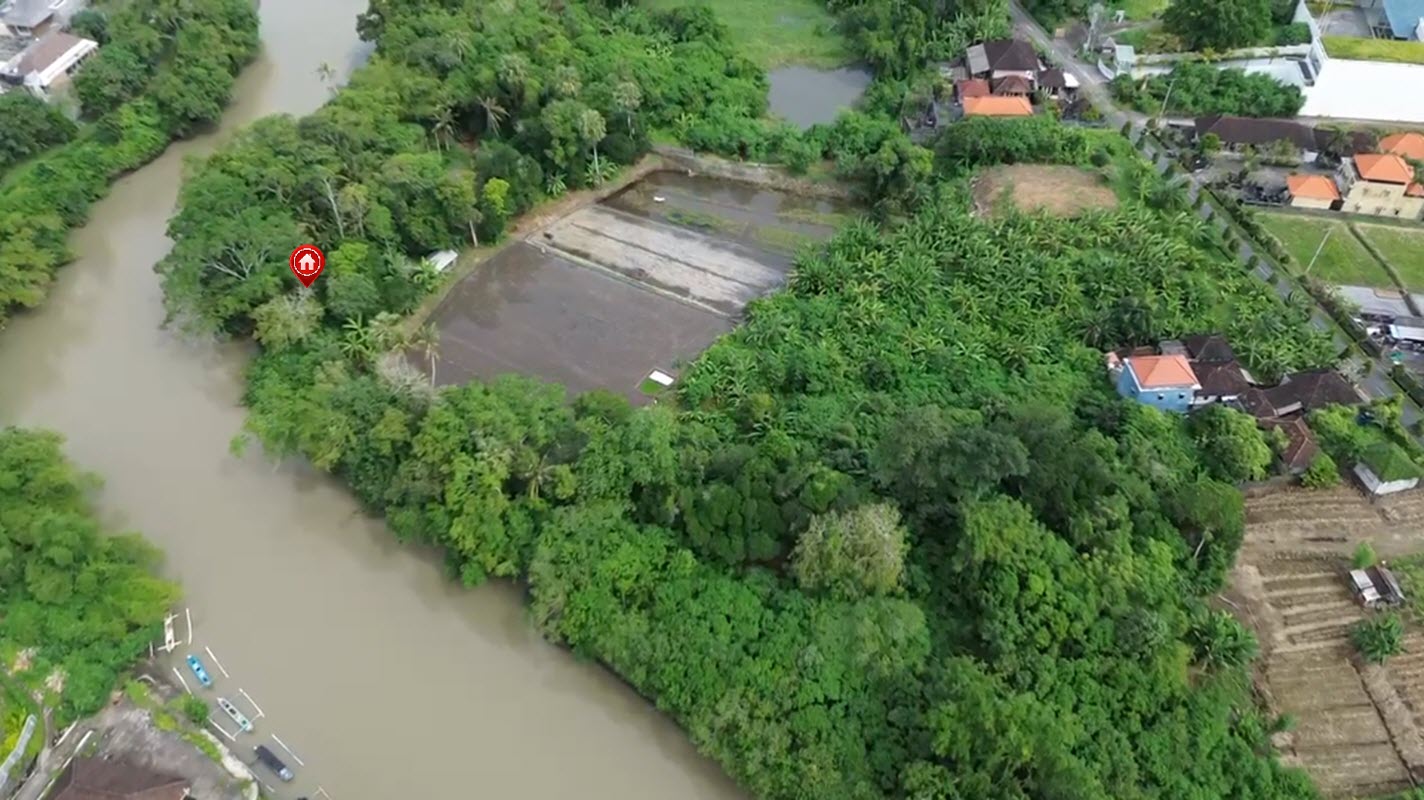 Set directly along the lush banks of the Muara Yeh Gangga river, this 21.8 ARE (2,180 m²) freehold plot offers a rare opportunity to own riverfront land in one of Bali’s most naturally beautiful and up-and-coming coastal areas. With an impressive 120 meters of river frontage, the land unfolds in a unique shape that hugs the water’s edge, capturing uninterrupted views of the flowing river, surrounding jungle, and distant rice fields.
