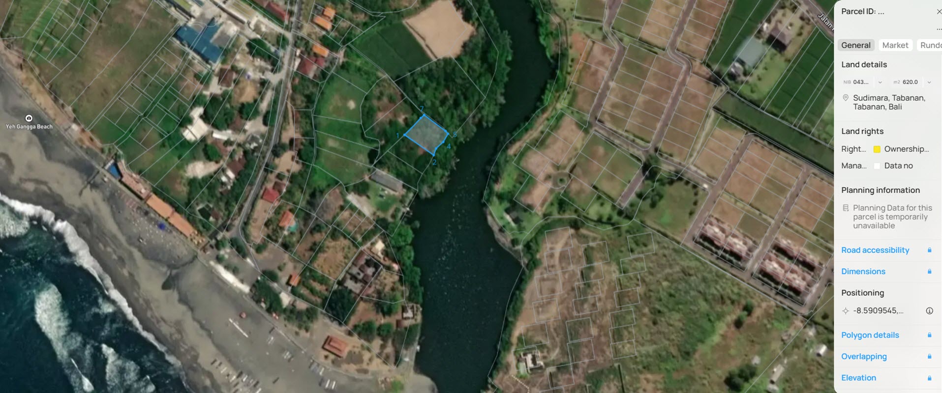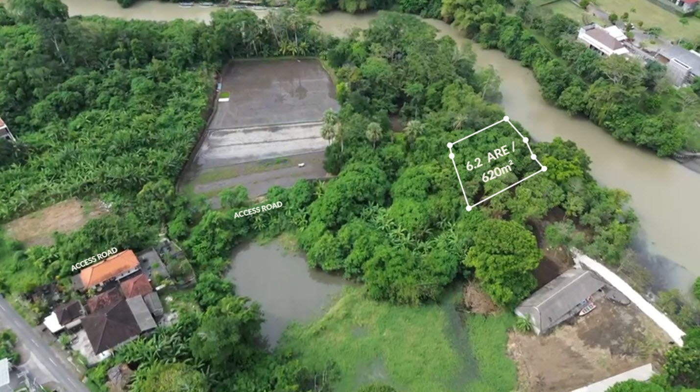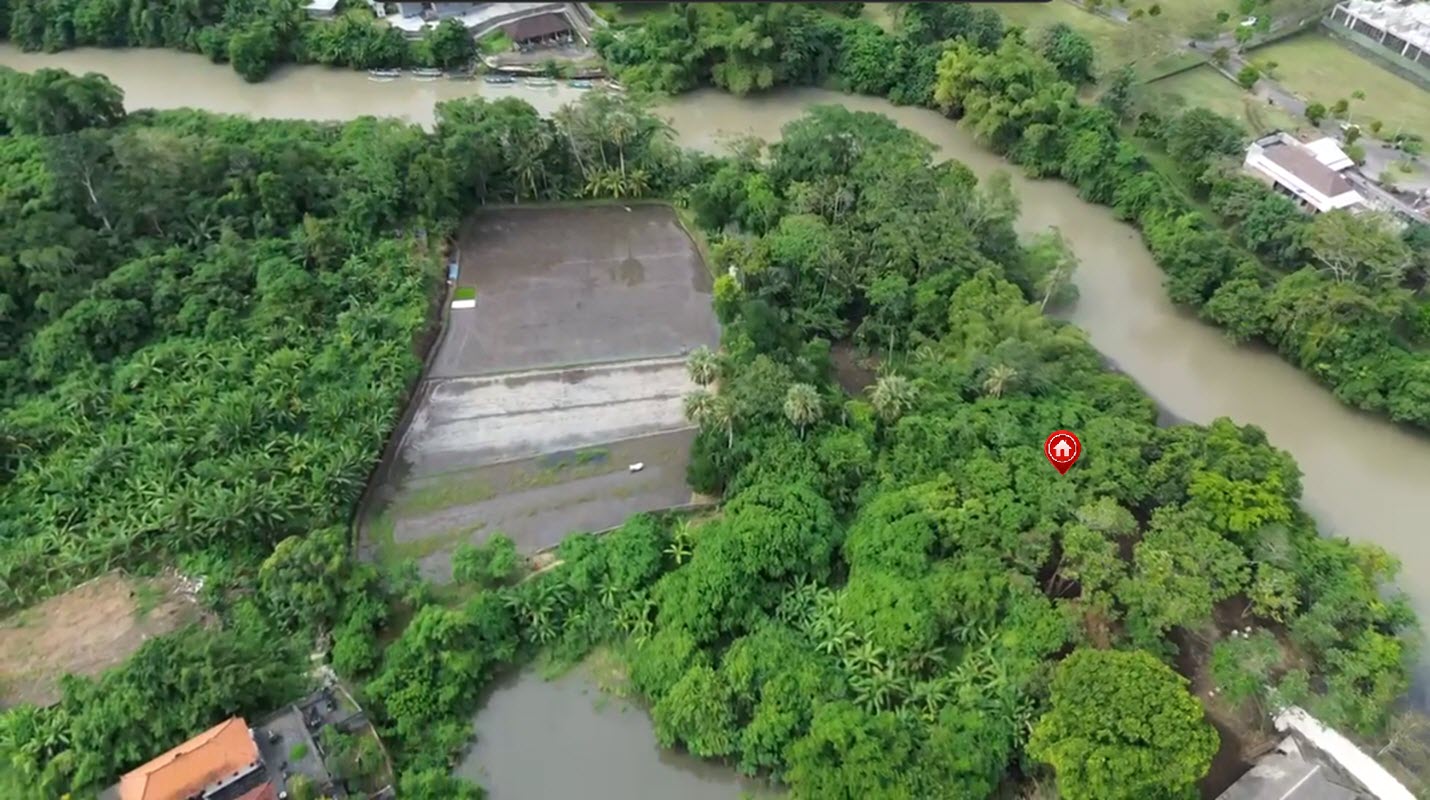 Nestled along the serene banks of the Muara Yeh Gangga river, this 6.2 ARE (620 m²) Leasehold plot offers 23 meters of direct river frontage with open views across surrounding jungle and river. The land is square-shaped, tucked away from the noise—ideal for those seeking privacy and connection to Bali’s natural beauty.